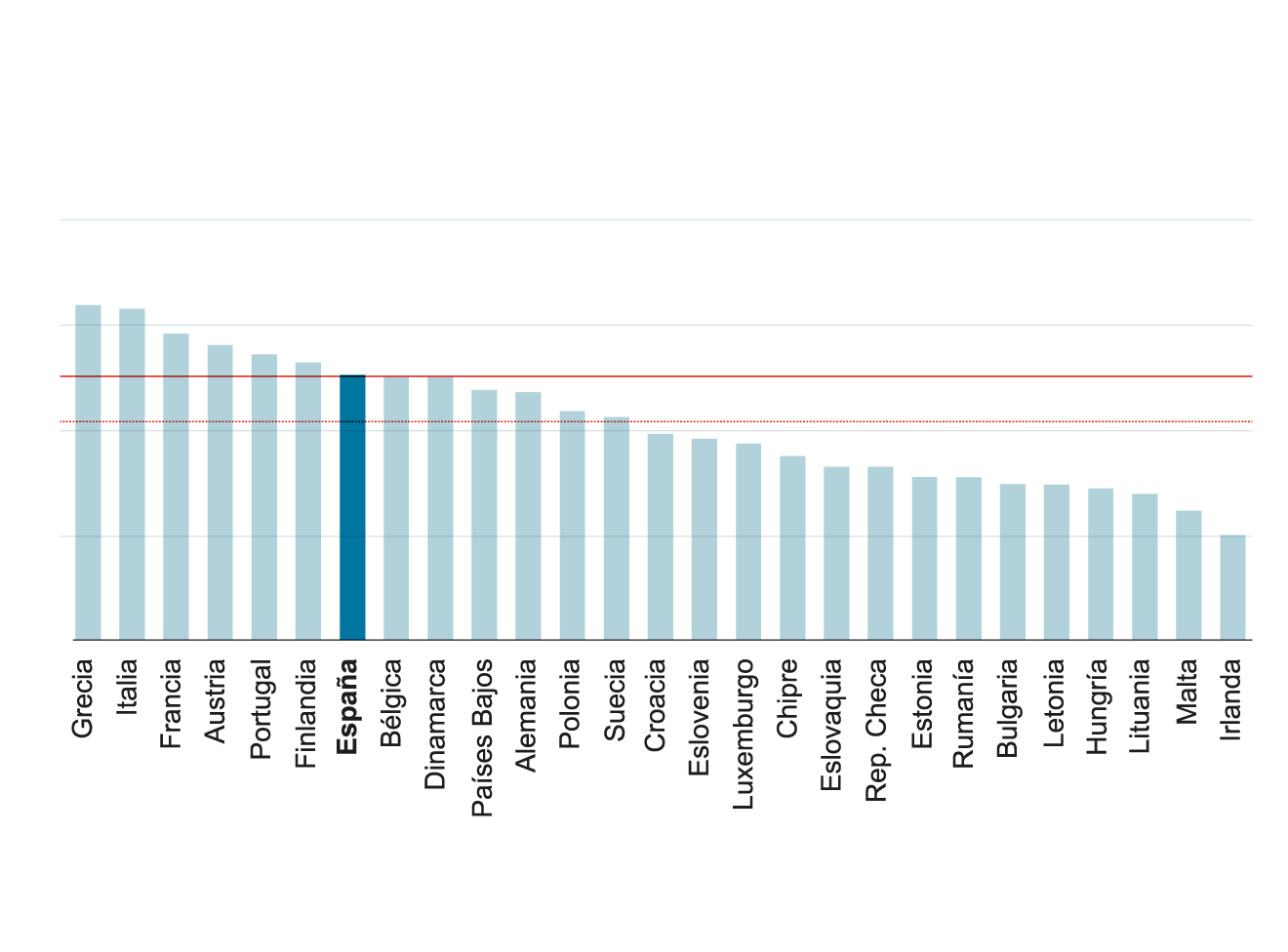 En el trabajo, realizado con datos de 2019, el regulador recuerda que el gasto del sistema de pensiones español (12,7% del PIB) Se trata de la mayoría de los medios únicos de la UE (10,4%) y es similar al peso medio de esta región, en la que existe una gran heterogeneidad por países. Asegura, por ejemplo, que en 2019 el tamaño del sistema de pensiones español, en relación con el nivel de la actividad económica, estaba por debajo del de seis países de la UE: Grecia, Italia, Portugal, donde el coste sobre el valor de su economía doméstica rondó el 15%, y Francia, Austria y Finlandia, que alcanzaron valores del 14,7%, el 14,1% y el 13,3% del PIB, respectivamente.